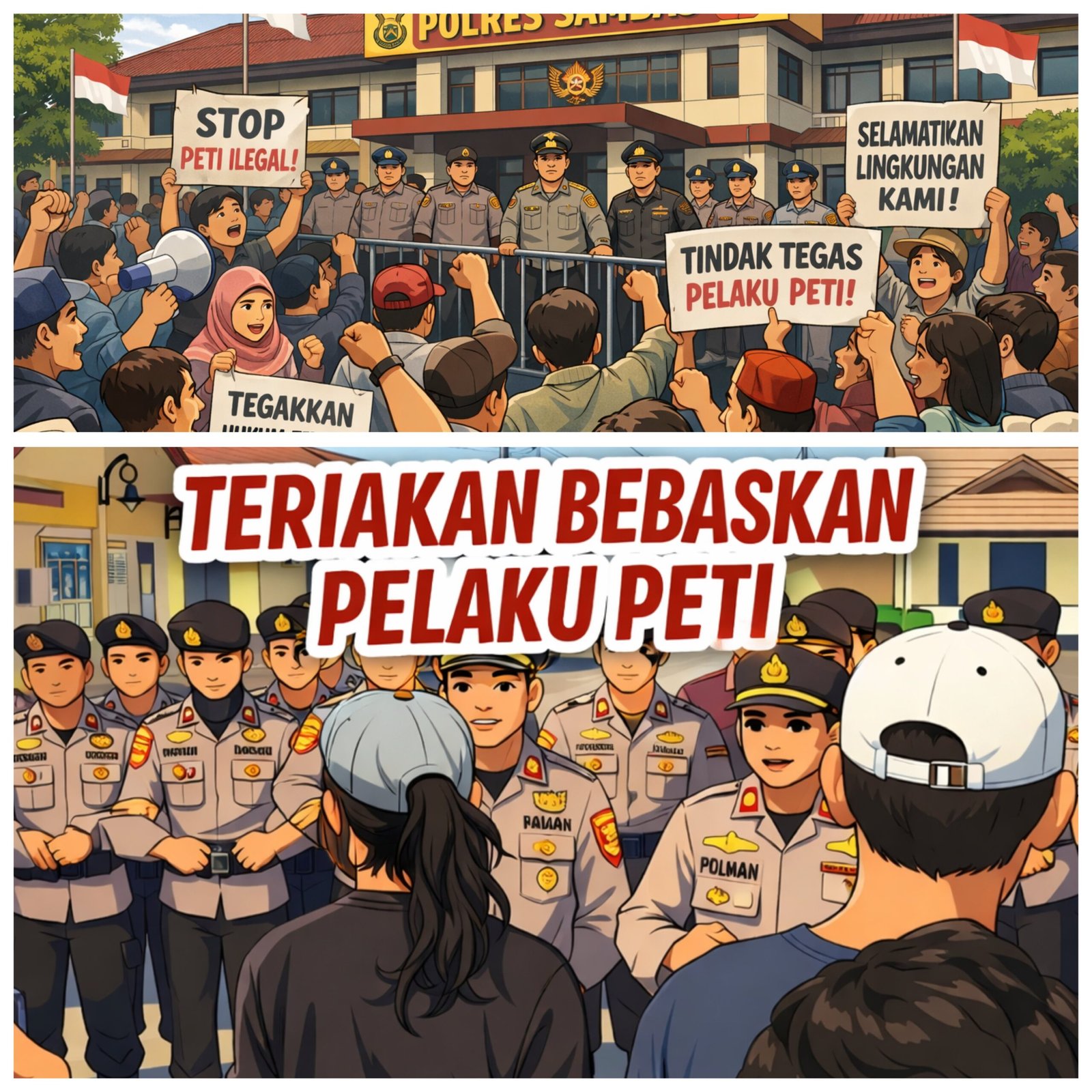 Menurut Bang Is warga dalam kaum Sambas , kronologi yang berkembang di masyarakat menimbulkan tanda tanya besar. Terduga pelaku PETI ditangkap, namun kemudian sekelompok orang yang juga diduga memiliki keterkaitan dengan aktivitas PETI mendatangi kantor Polres Sambas dan akhirnya yang bersangkutan dilepaskan.