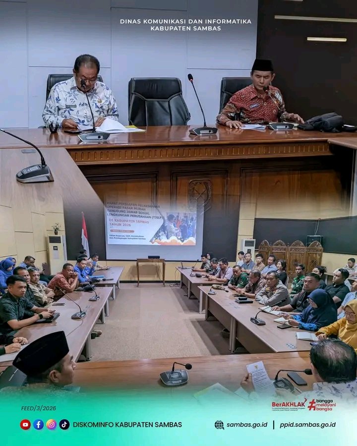 sambas – Pemerintah Kabupaten Sambas menunjukkan komitmennya dalam membantu masyarakat menghadapi lonjakan kebutuhan menjelang Idul Fitri 1447 H. Hal ini terlihat dari langkah cepat pemerintah daerah dalam mematangkan pelaksanaan Operasi Pasar Murah (OPM) melalui rapat koordinasi yang dipimpin Sekretaris Daerah Kabupaten Sambas Ir. H. Fery Madagaskar, M.Si, di Aula Sayap Kiri Kantor Bupati Sambas, Kamis (5/3/2026).